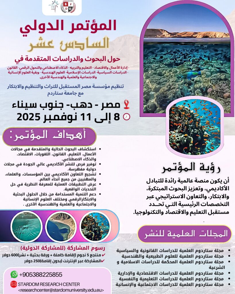 تعلن جامعة ستاردوم بالتعاون مع مؤسسة مصر المستقبل للتراث والتنمية والابتكار عن انعقاد